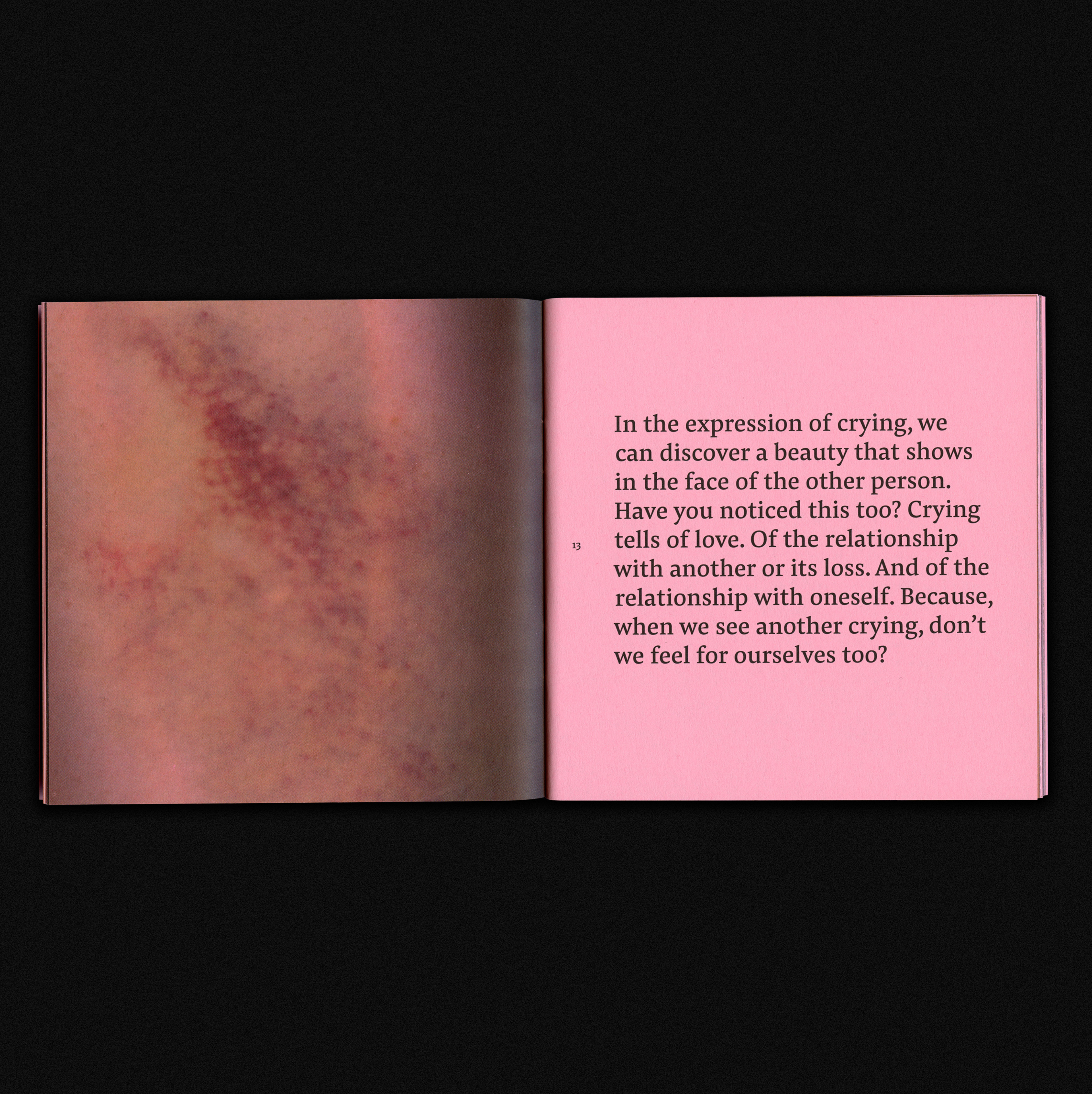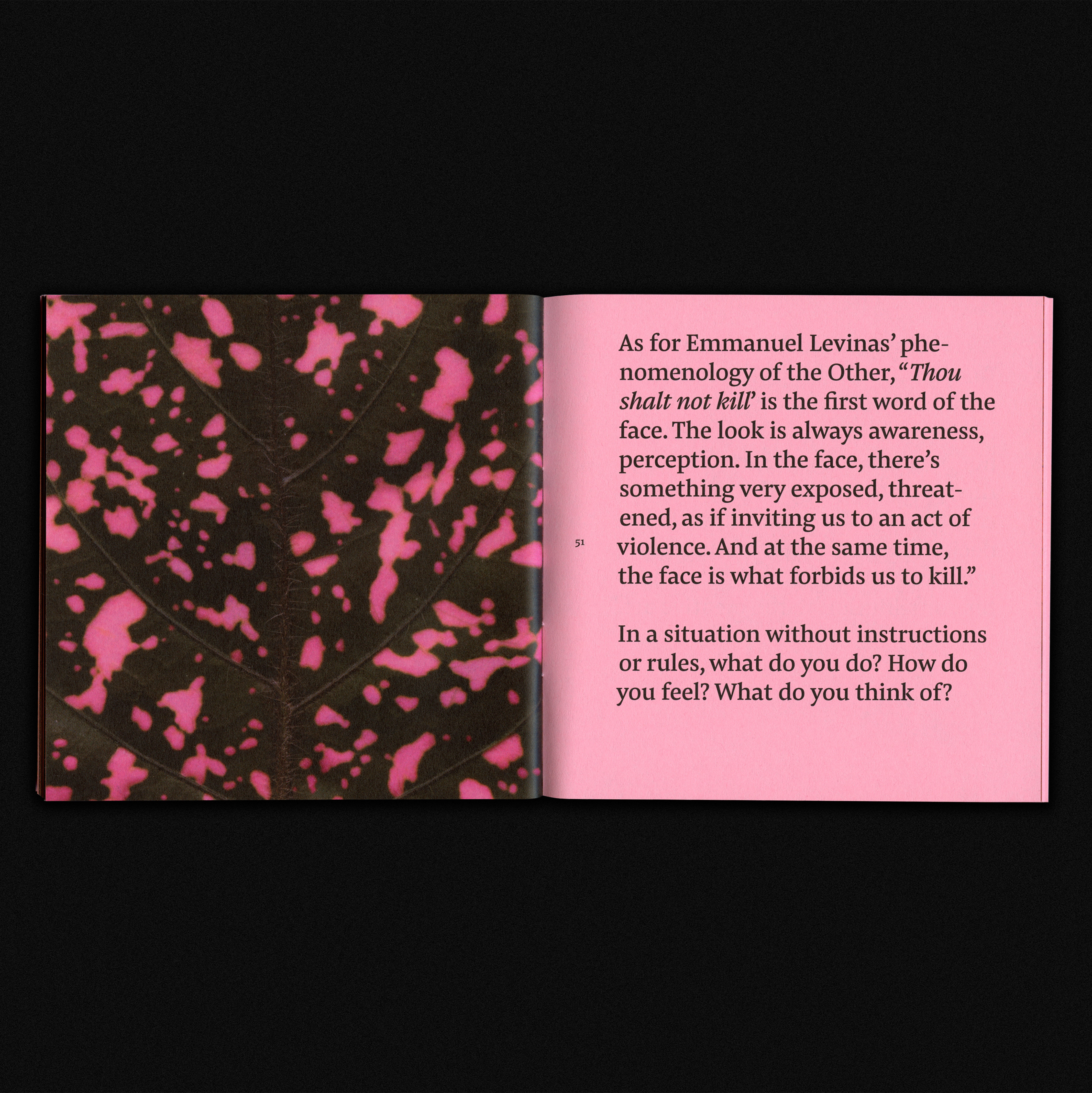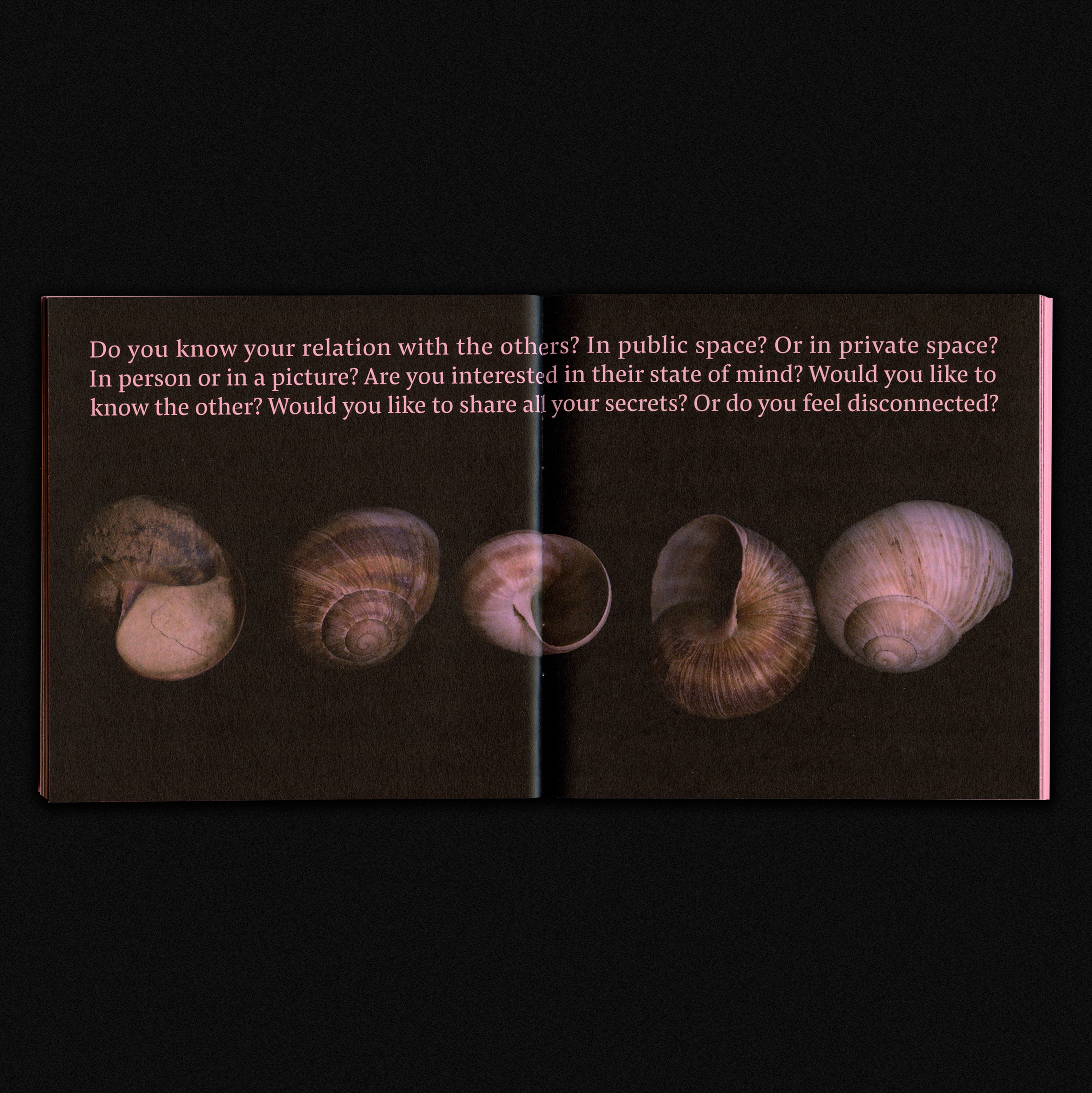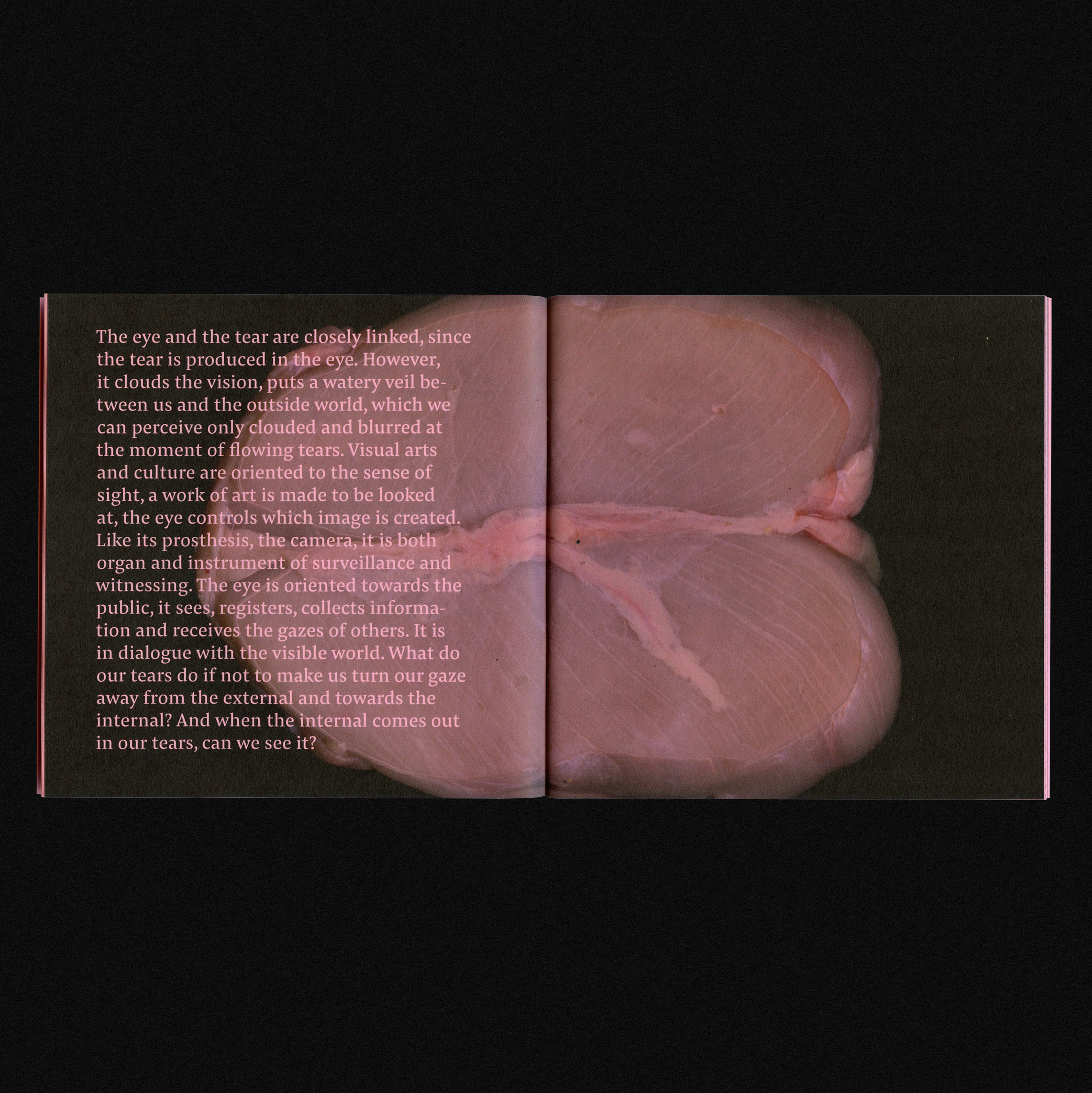 The booklet features a text produced by curator Synne Genzmer that talks about epigenetics – from the perspective of art history intertwined with the clinical description of the phenomenon. For accompanying her interventions, I used a personal digital archive of scanned items such as edible objects (raw eggs, meat, vegetables), parts of the human body, artefacts, or natural components (plants, shells, insects, etc.). The uncommon illustrations aim to activate tactile and visual senses through bold organic textures. The face mask seen on the key visual is a personal experiment on my own skin and then scanned in-house and barely post processed.